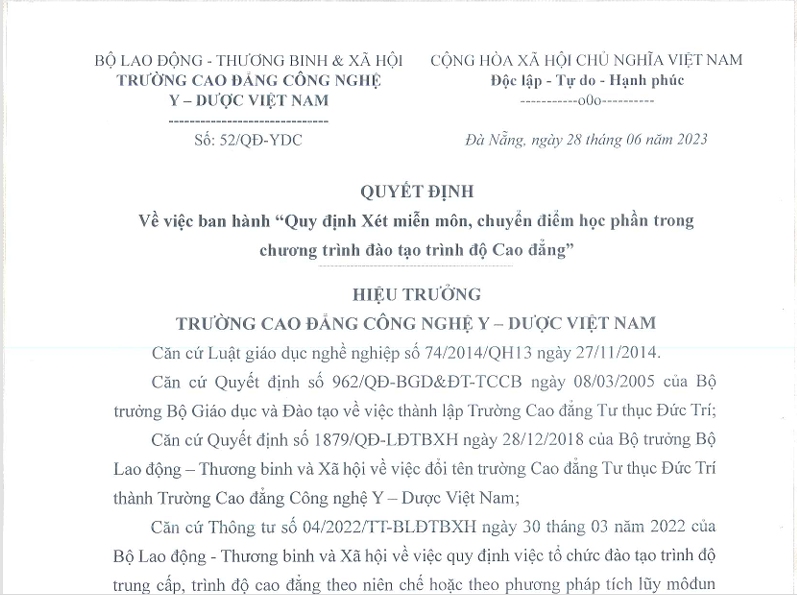 QĐ vv Ban hành Quy trình Xét miễn môn, chuyển điểm học phần
